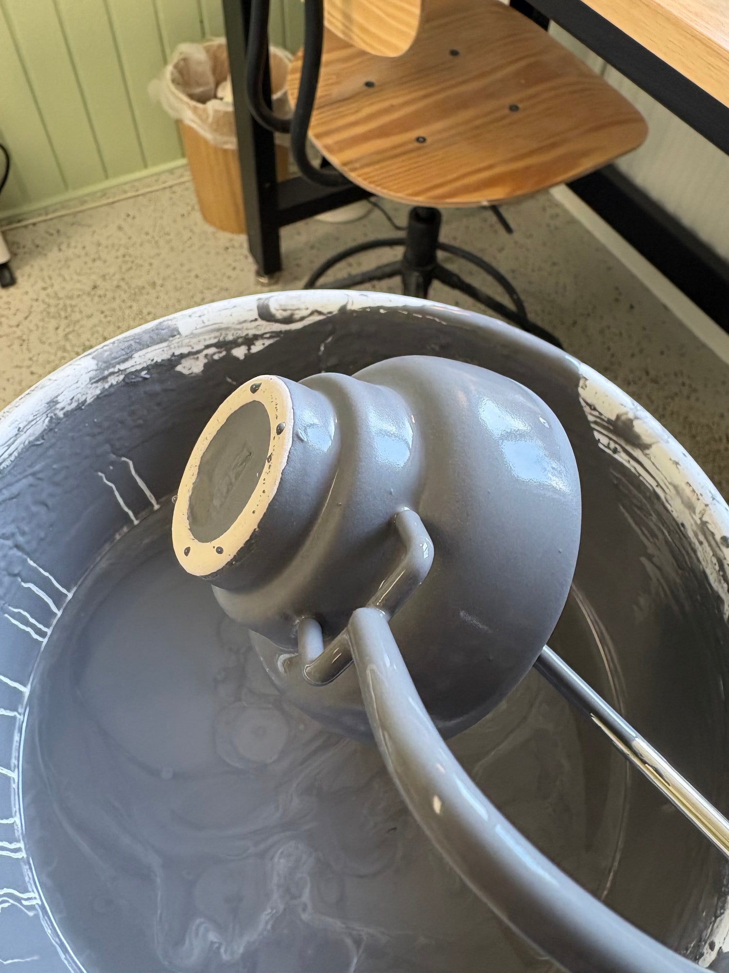 Jag slipar sedan botten för att föremålen inte ska repa underlaget. Som ett sista steg tvättar och torkar jag föremålen.